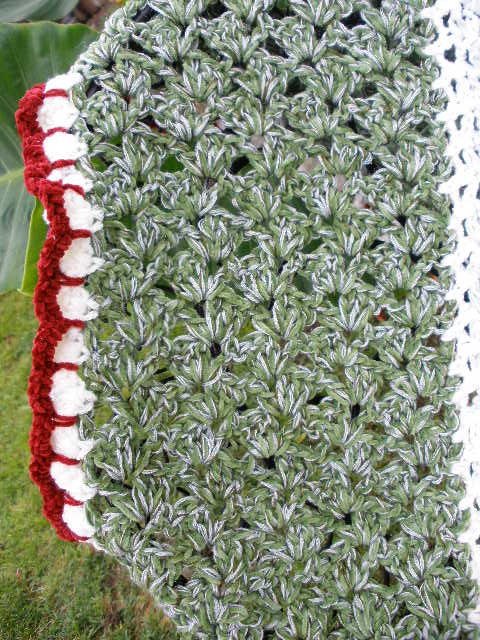 en esta foto se ve el borde primero un bodoque luego en otro color una cadena haciendo arcos y otra vuelta de punto bajo ♥
