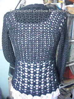 Este lo tejí con doble hebra de lana finita una de ellas tiene hilos dorados
