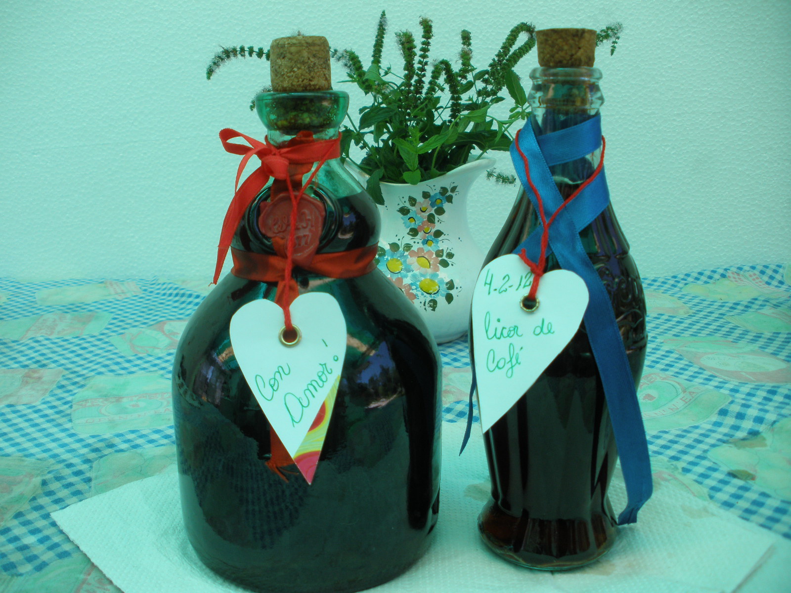 Aquí los ingredientes que son muy pocos y hay en todo hogar : Azúcar 500 gs, Miel 1 cda, 3 sobres de Té, 2 cdas de Café instantáneo, 1 cda de Esencia de vainilla o 2 a gusto, 500 c.c de Agua, 500 c.c de Alcohol fino, y dos Botellas con corcho.