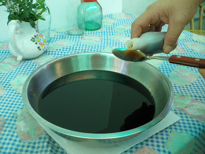 Hacemos un almíbar con el azúcar y el agua hasta que este espesito lo hervimos unos 10´ aproximadamente, le agregamos los saquitos de té y el café revolvemos unos minutos mas y retirar dejar entibiar