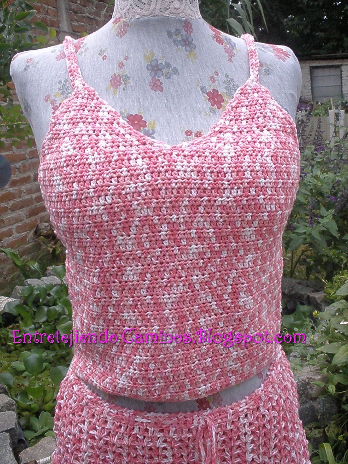 Aquí la musculosa  en detalle con punto bajo y breteles finos  .