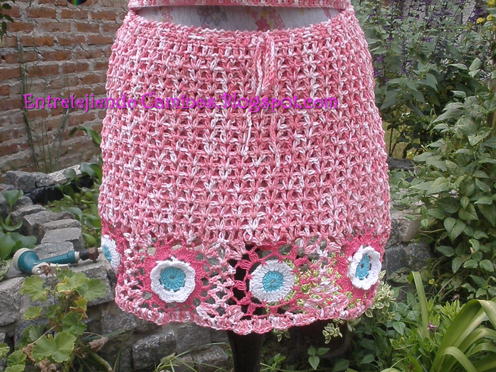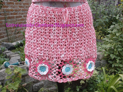 Y esta es la pollera que es muy hermosa combinada con flores distintas y tres tonos para que resalten y se puedan apreciar mejor y un punto calado  y un cordón par ajustar ♥