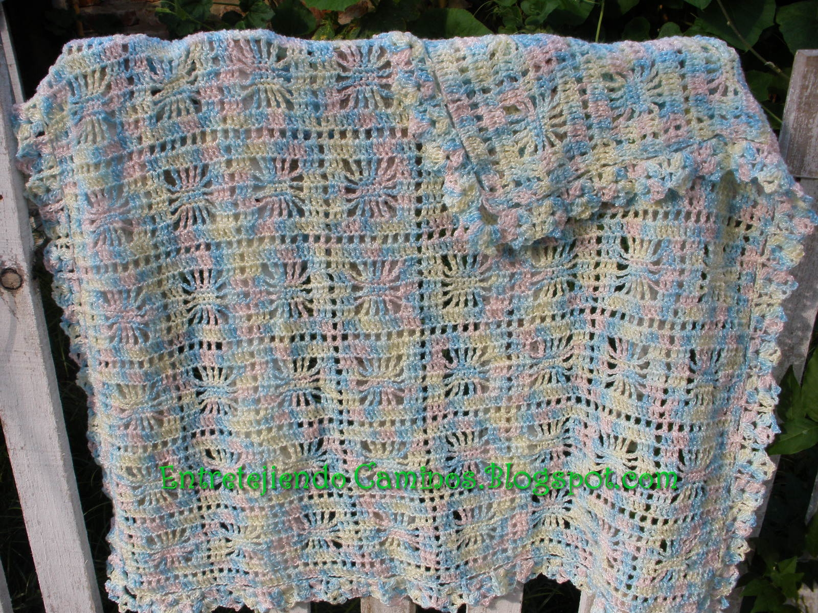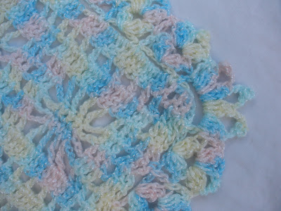 Estuve un poco enferma pero ya estoy sanita y haciendo ruido jajaja , no puedo dejar de trabajar mis manos no se quedan quietas nunca  ☺ y les quiero mostrar una mantilla de bebes preciosa para mi gusto , la lana matizada en colores pasteles combinada con unos hilos muy finitos de seda me encanta , el punto es muy sencillo y vistoso y la terminación una pequeña puntilla  porque la lana dice todo es tan suave ♥