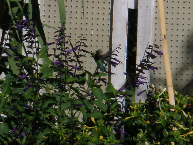 Y no puedo dejar de lado mi jardín miren que preciosidad viene de visita todos los días a esas  pequeñas flores violetas que deben  ser muy dulces , este hermoso colibrí que mi hija le pudo sacar una foto a pesar de su velocidad que bello regalo ♥